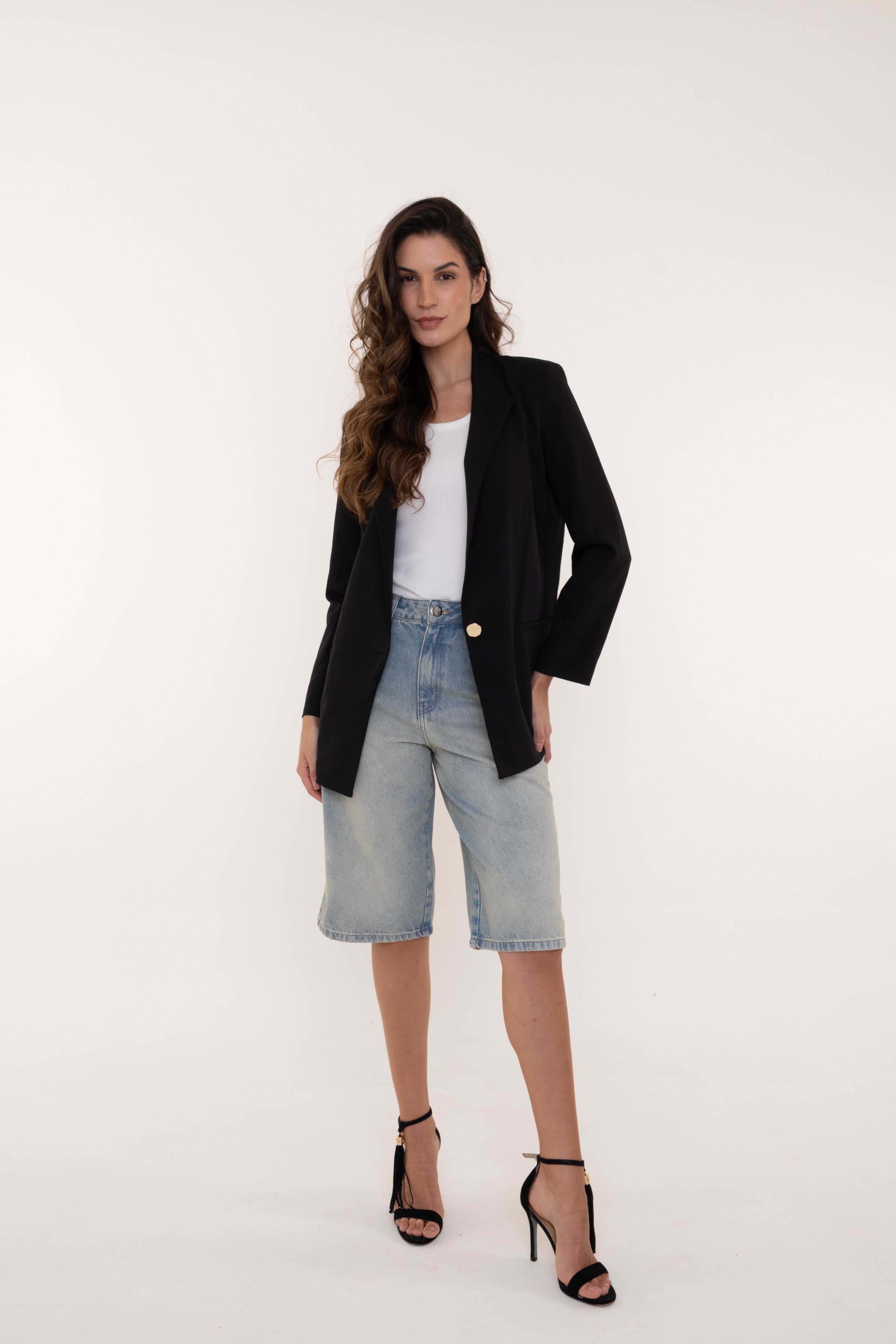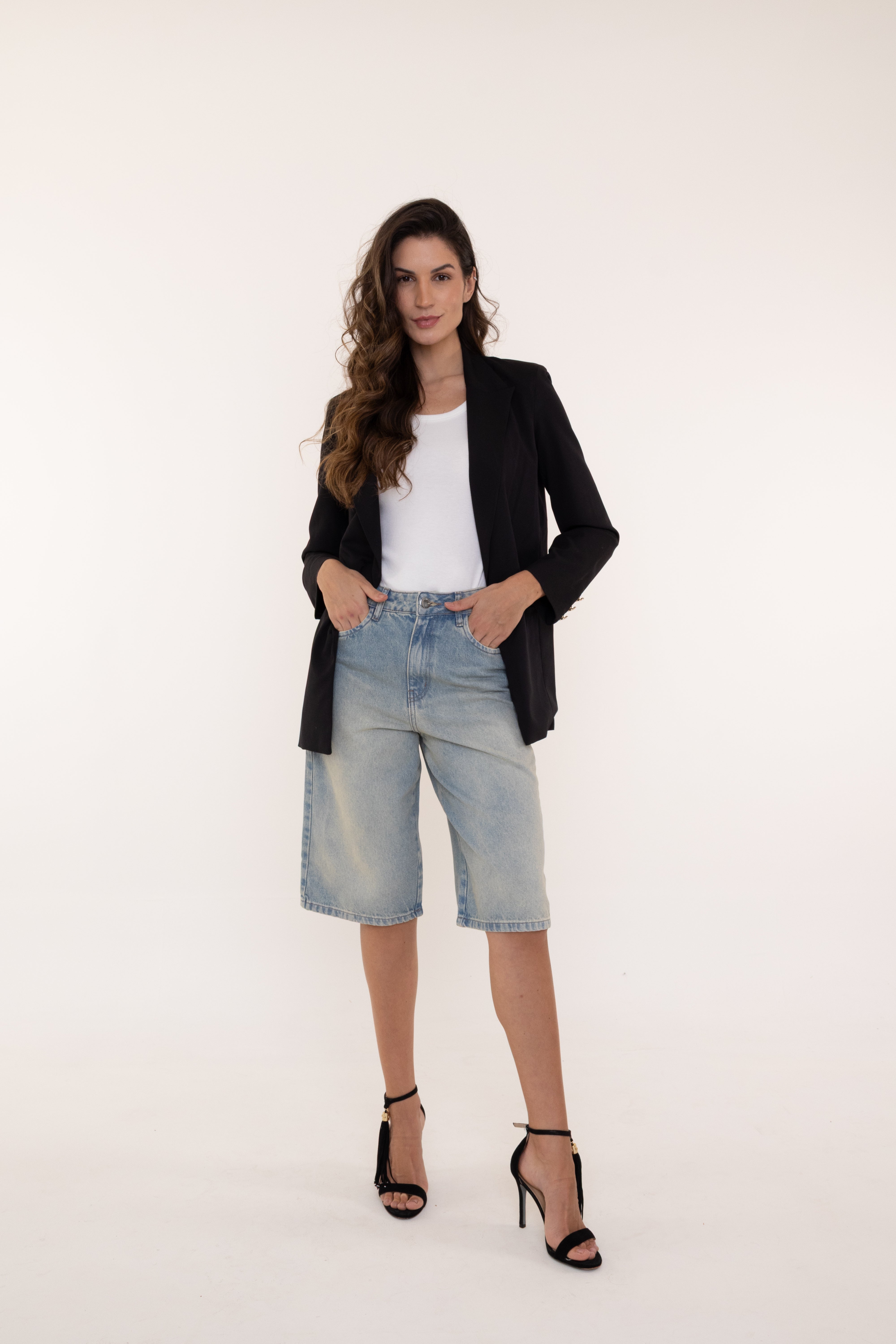 Confeccionada em denim puro de algodão, oferecendo caimento estruturado e estética contemporânea. Sua modelagem atemporal e o acabamento refinado conferem presença e versatilidade, tornando a peça um elemento essencial para composições casuais com sofisticação discreta.