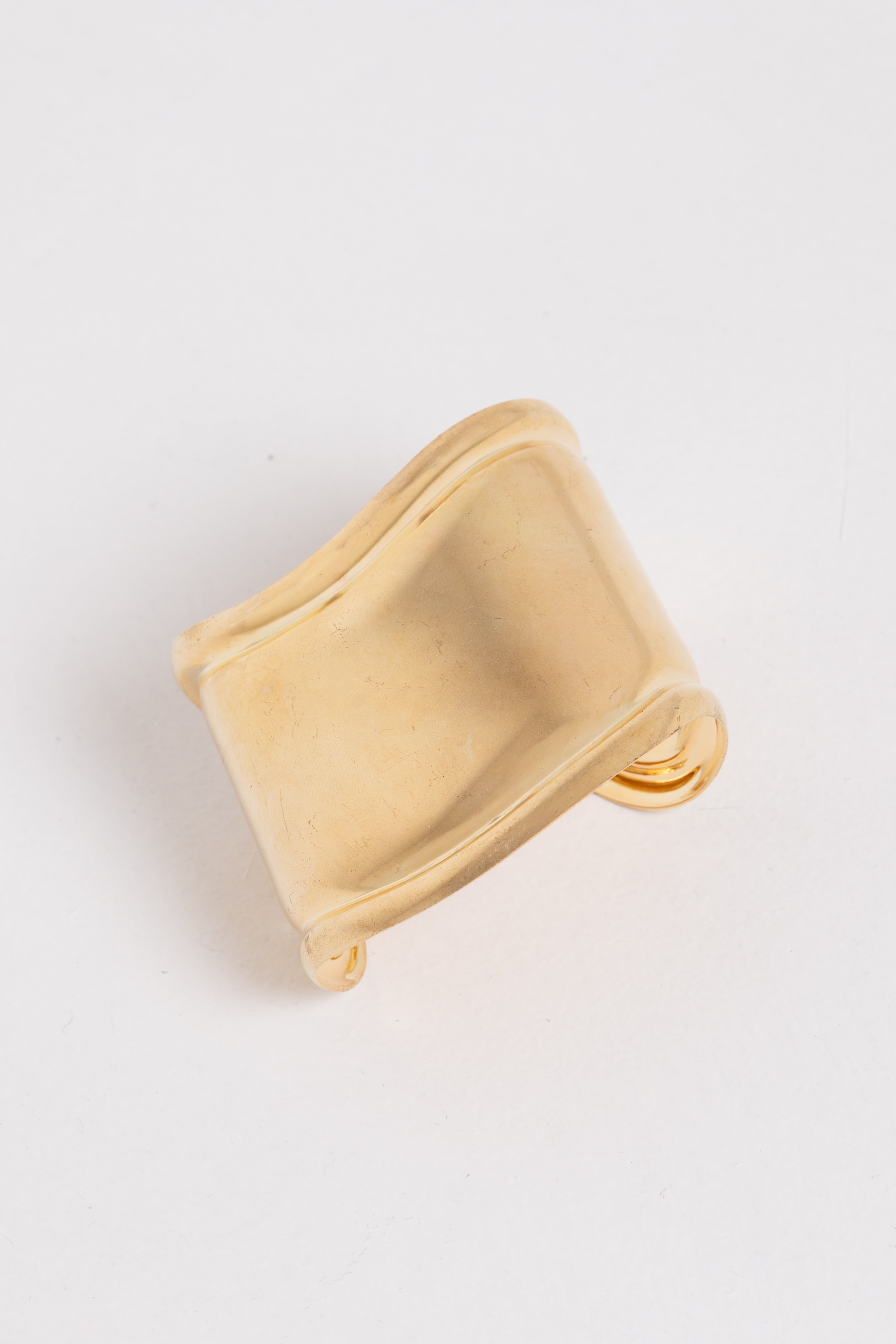 Elaborado em metal, revela um design sofisticado que combina simplicidade e presença. Seu brilho marcante e as linhas bem definidas conferem elegância imediata, tornando-o um acessório versátil e atemporal.