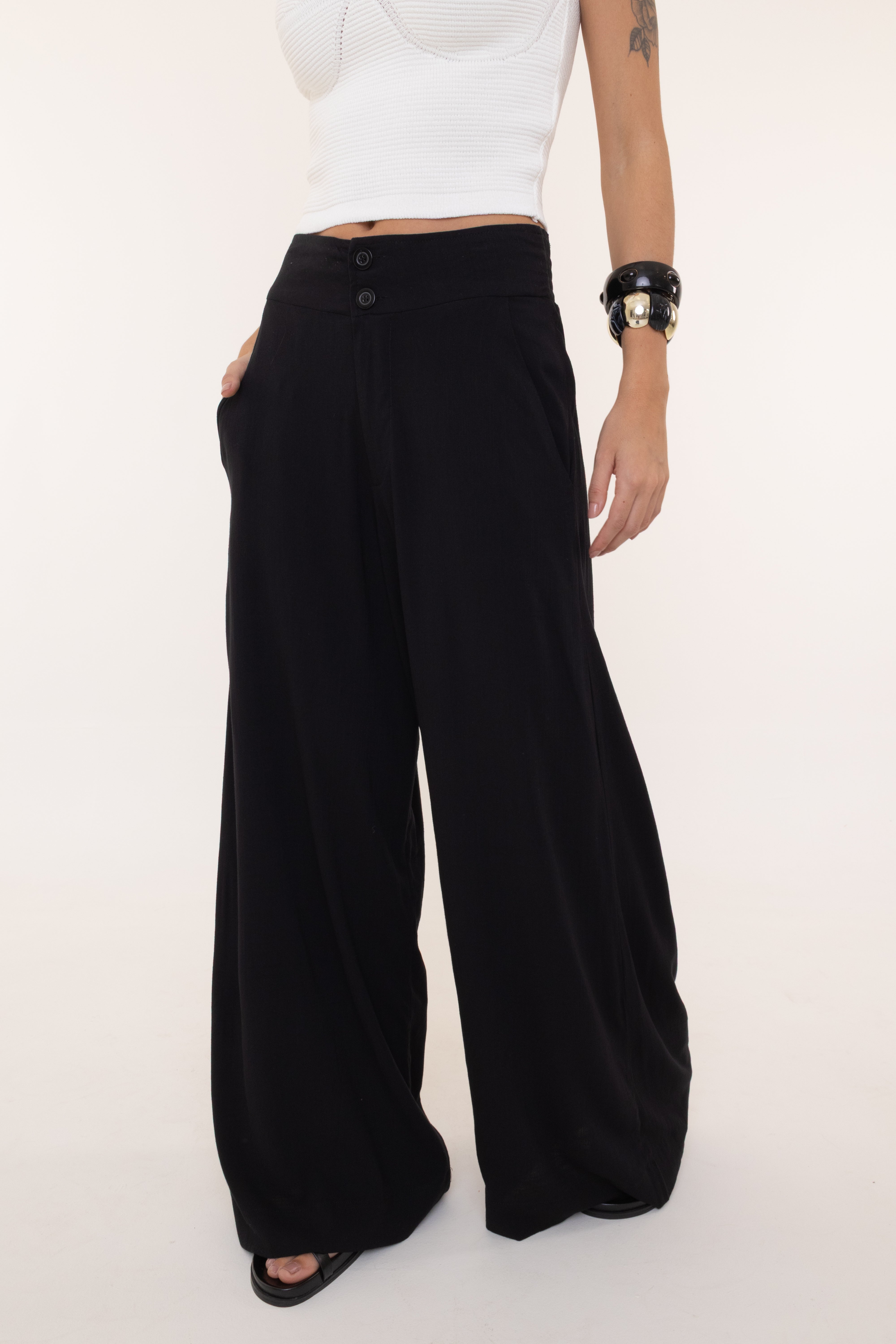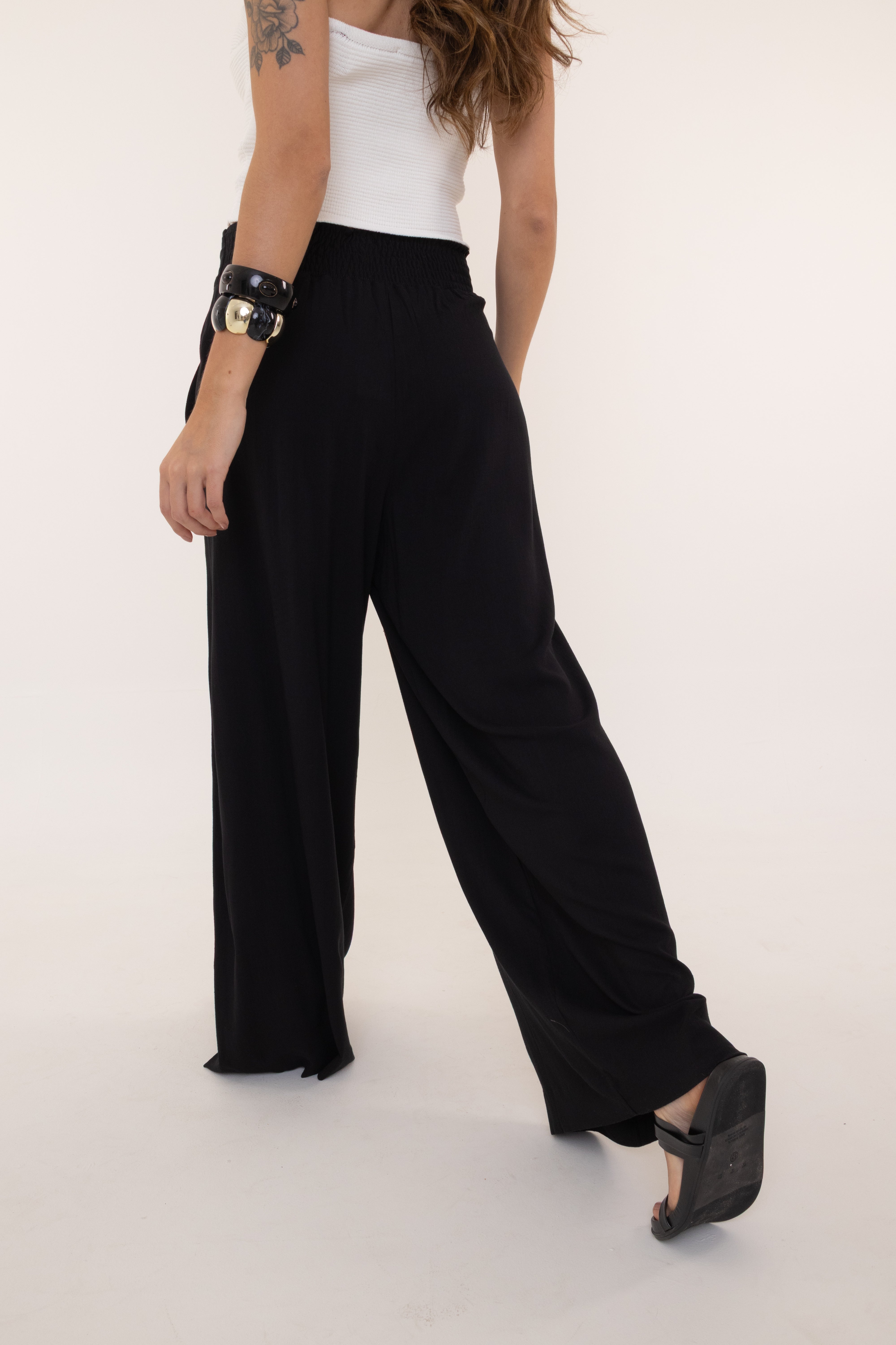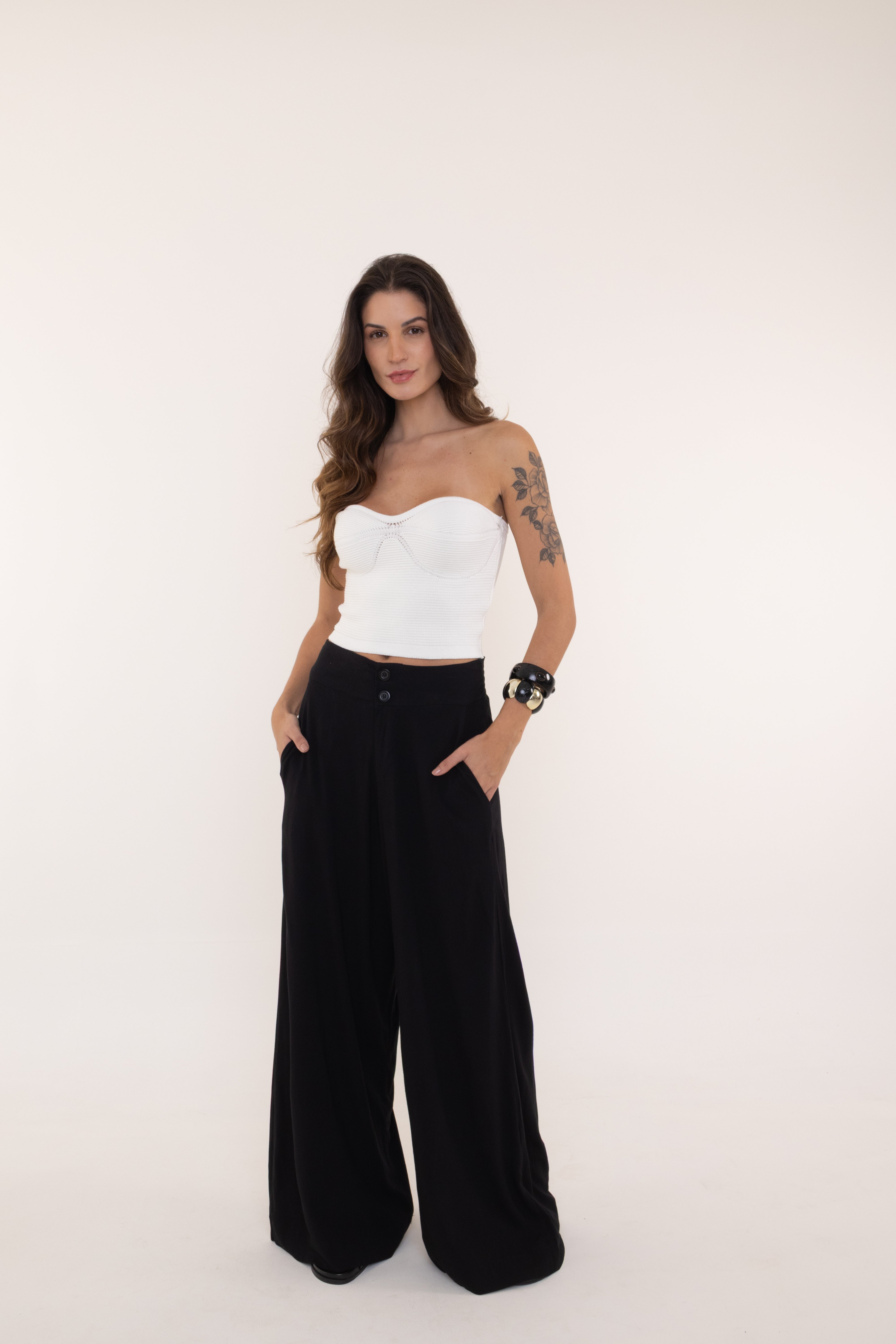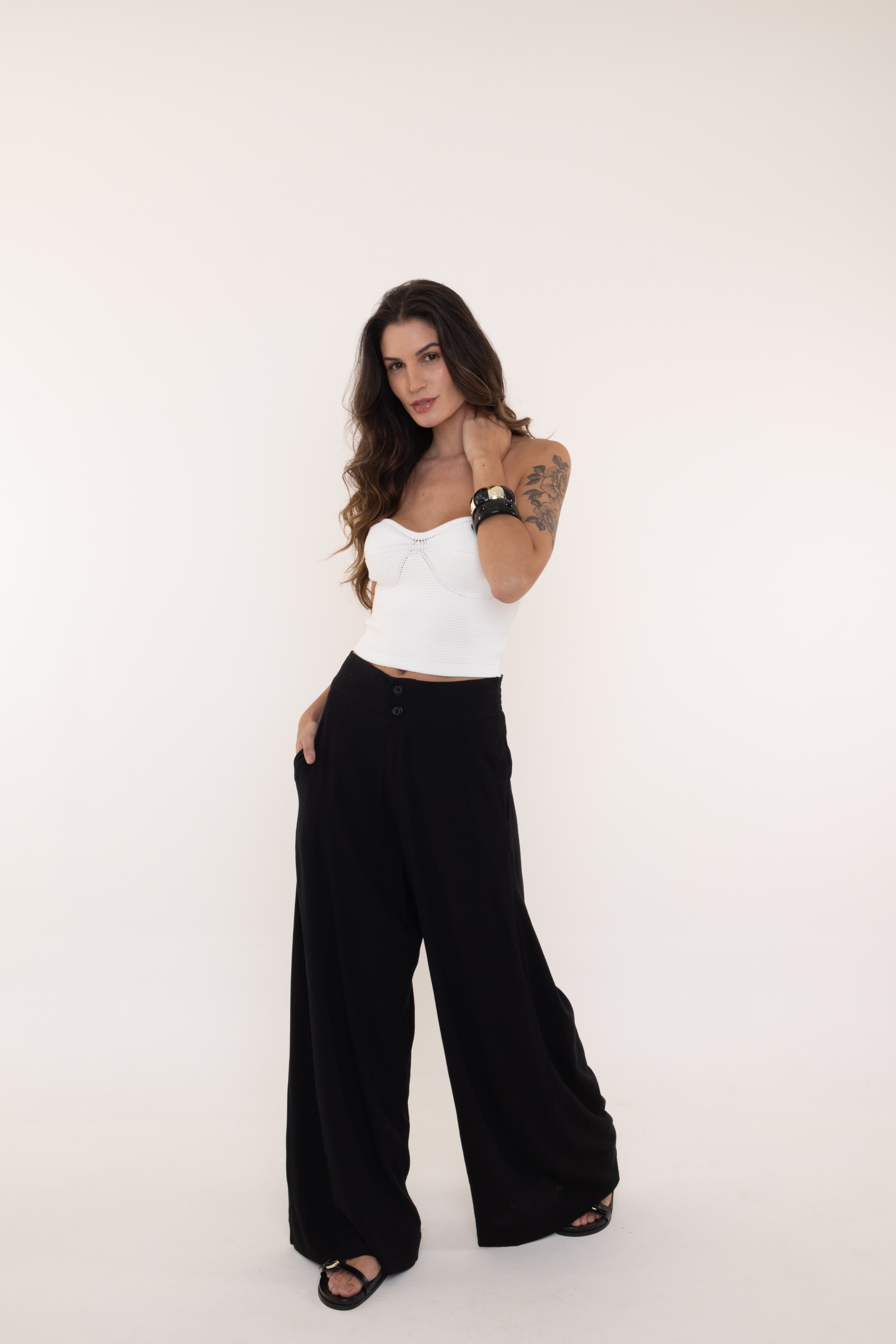 Confeccionada em 100% viscose, une conforto e elegância com um caimento fluido e leve. Seu corte amplo proporciona liberdade de movimento e um visual moderno, perfeito para looks casuais ou sofisticados. Versátil e atemporal, é ideal para combinações do dia a dia ou eventos especiais.