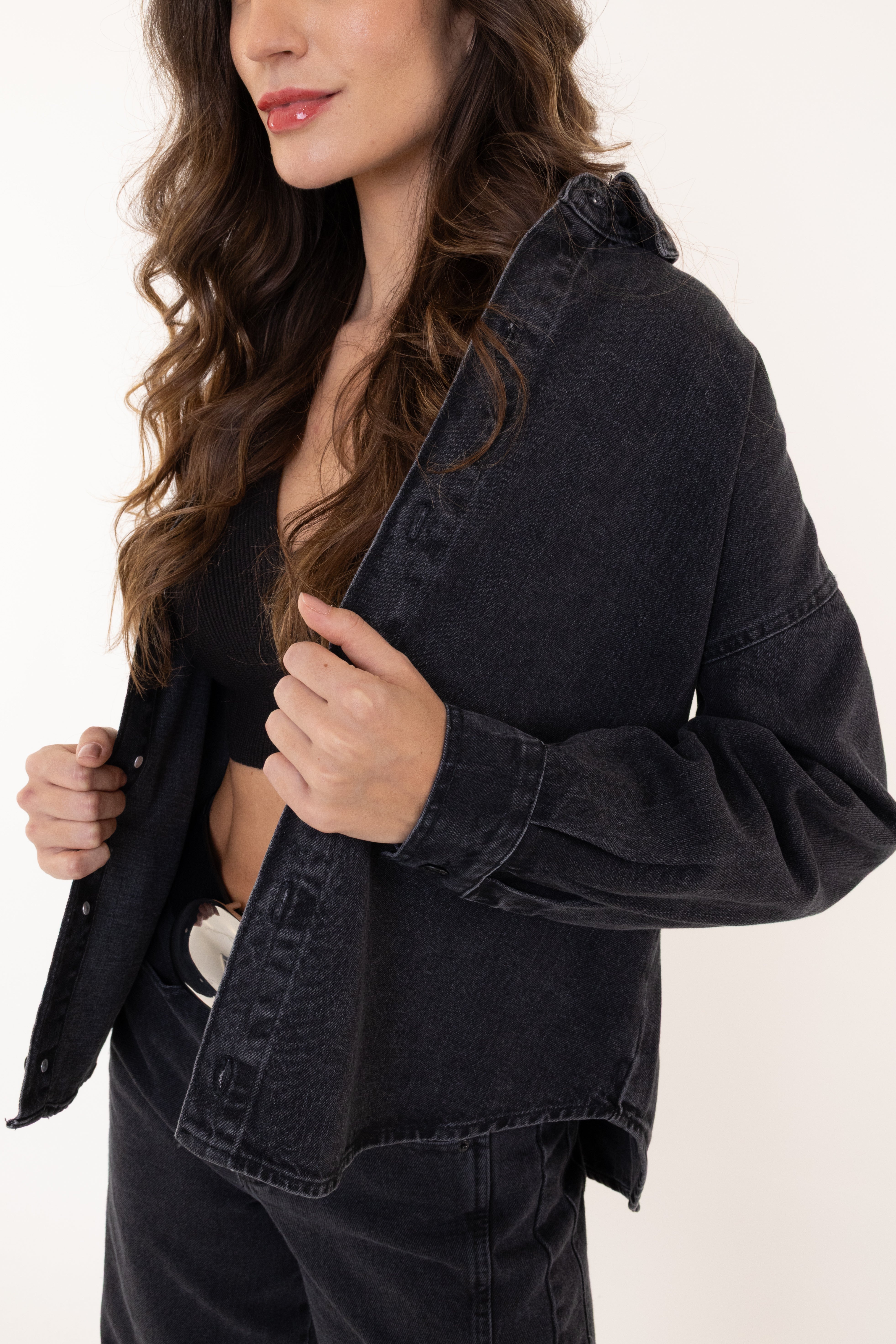 Confeccionada em 100% algodão, une conforto, durabilidade e estilo atemporal. Seu corte clássico e o acabamento em jeans preto proporcionam versatilidade, sendo perfeita para compor looks casuais ou mais modernos, adicionando um toque urbano e sofisticado à produção.