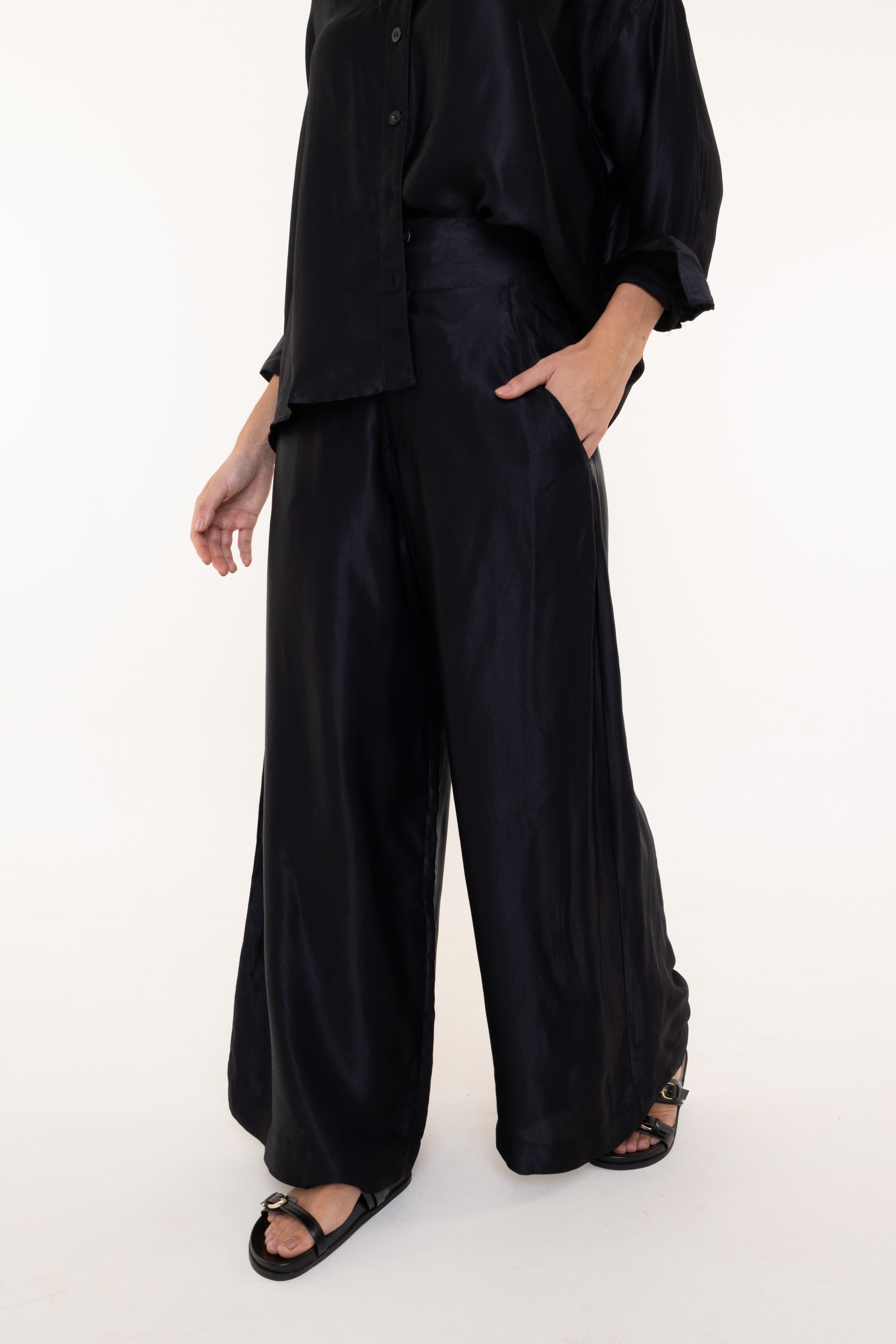 Confeccionado em 100% viscose com acabamento em cetim, une sofisticação e conforto. Seu caimento suave e elegante proporciona liberdade de movimento, enquanto o tecido acetinado confere um toque de glamour, ideal para produções sofisticadas ou momentos especiais.