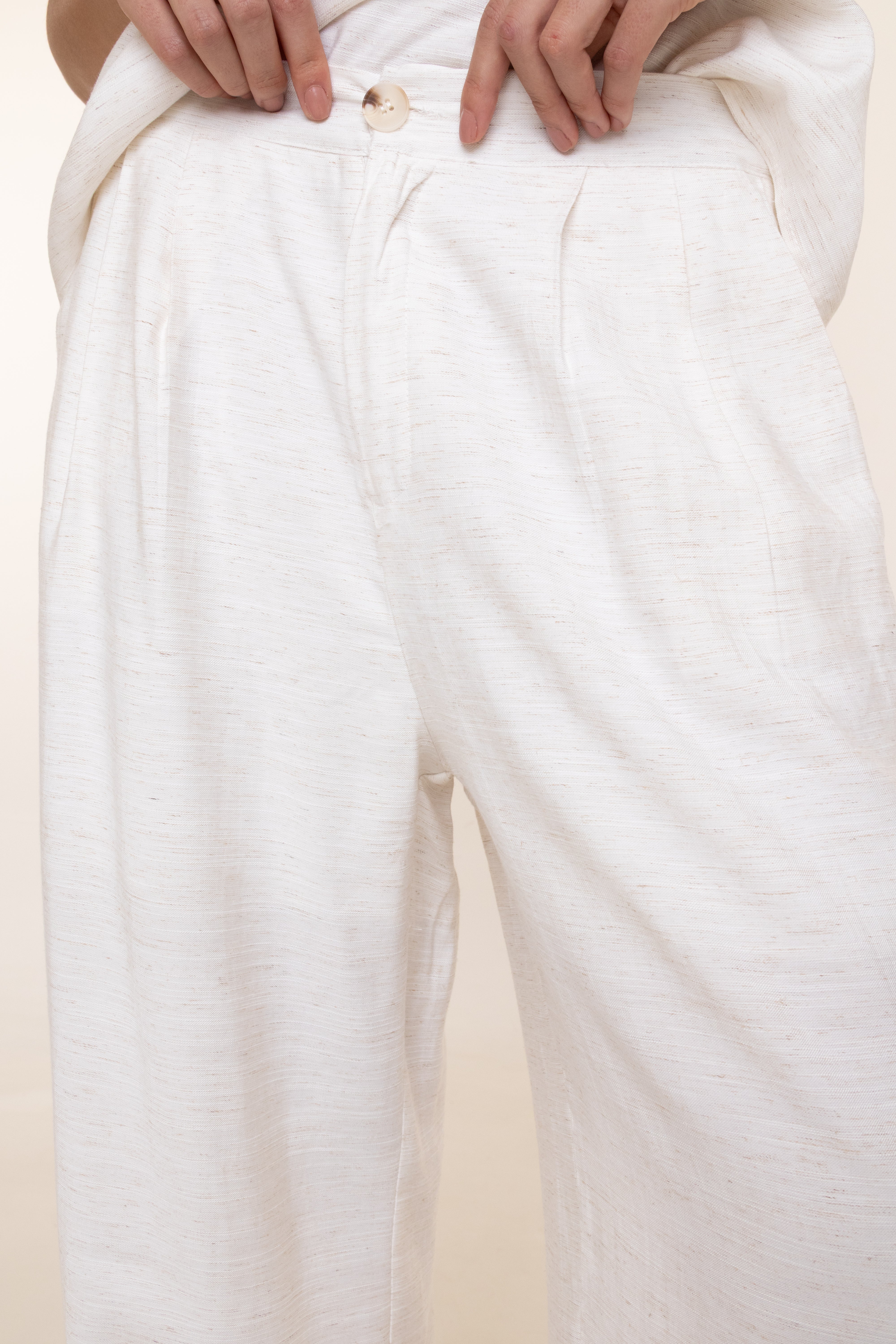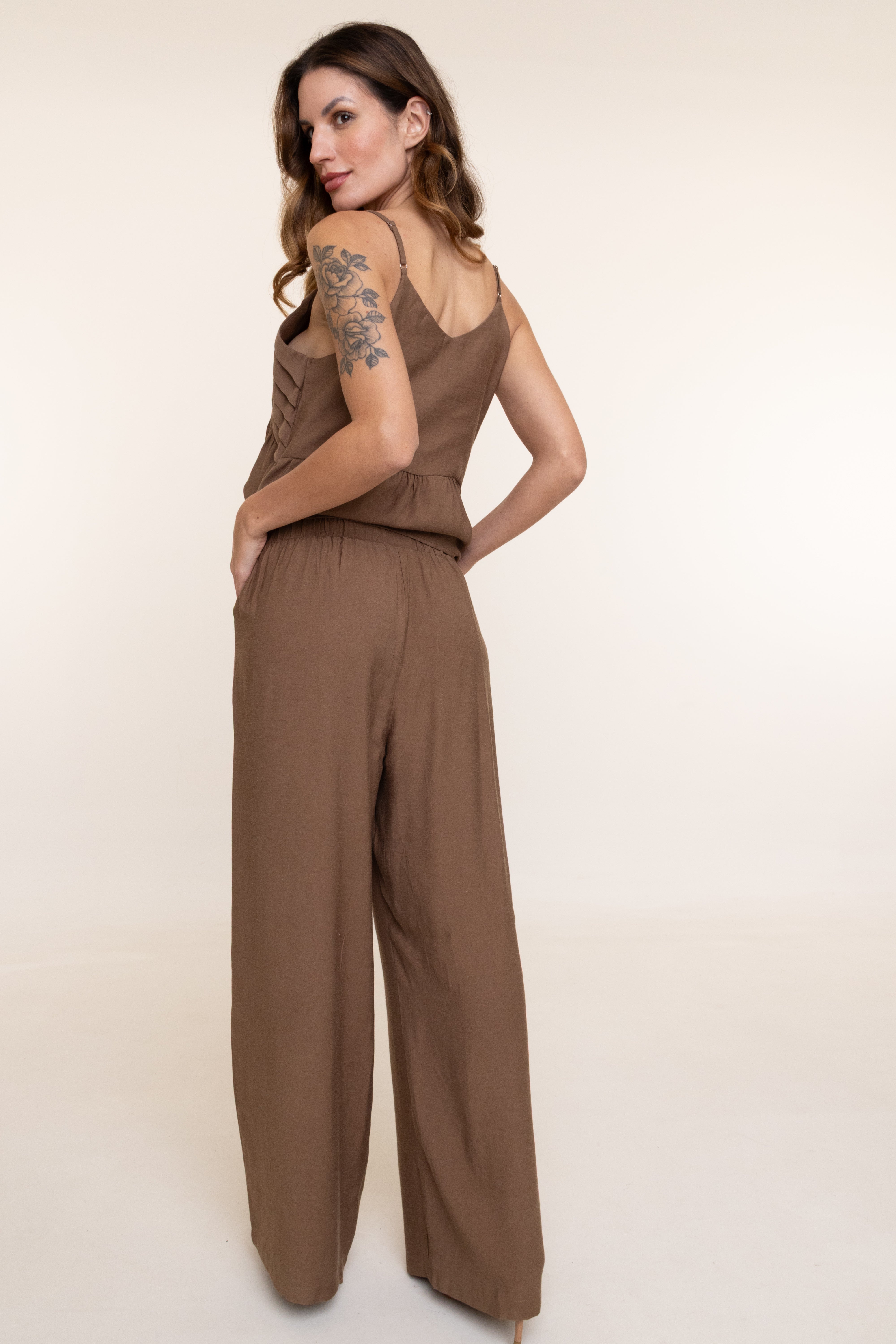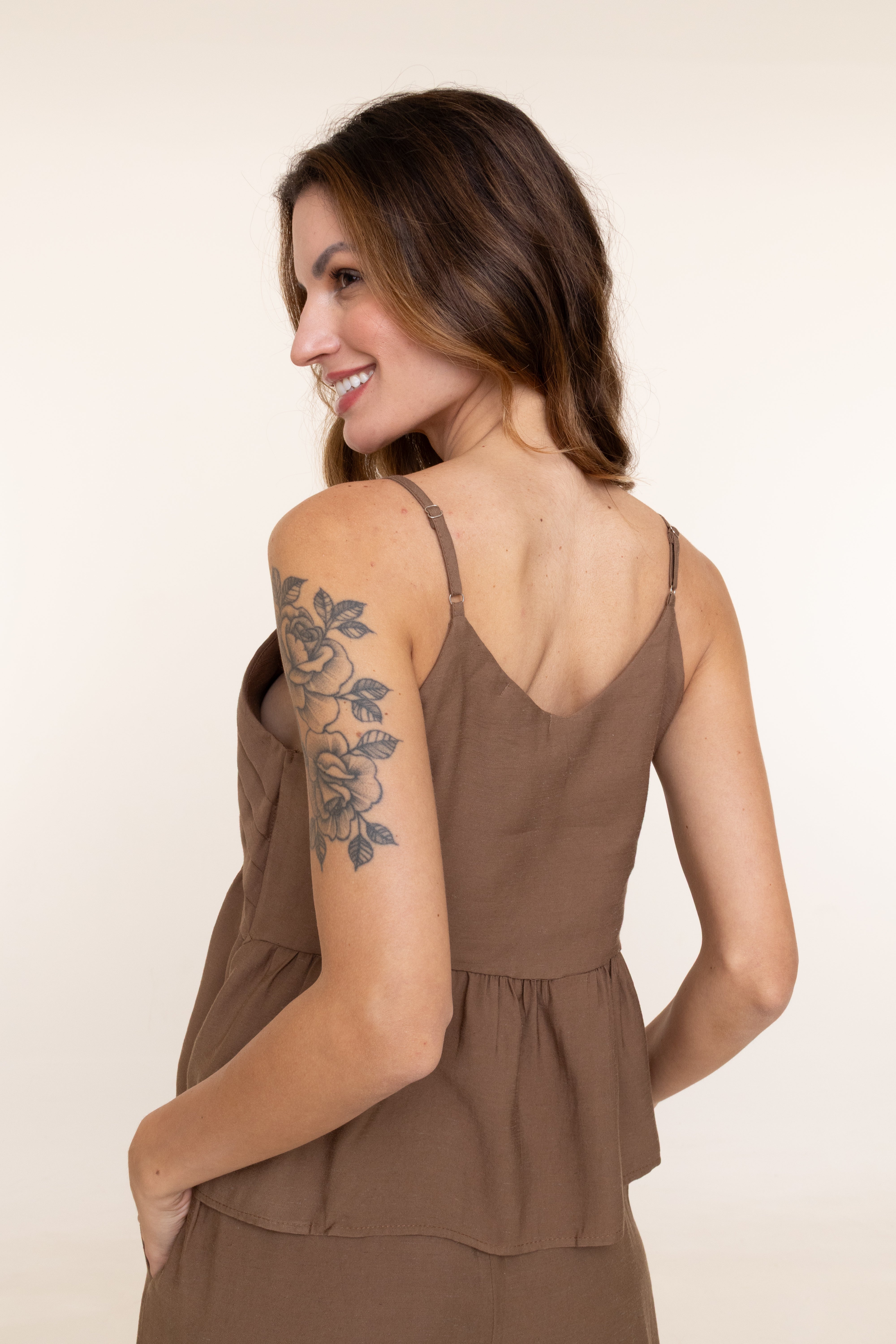 Confeccionado em 86% viscose, 9% poliéster e 5% linho, combina leveza, conforto e sofisticação. Seu caimento fluido e tecido de toque suave garantem liberdade de movimento, enquanto o design versátil permite criar looks elegantes para o dia a dia ou ocasiões especiais, conferindo um visual moderno e atemporal.
