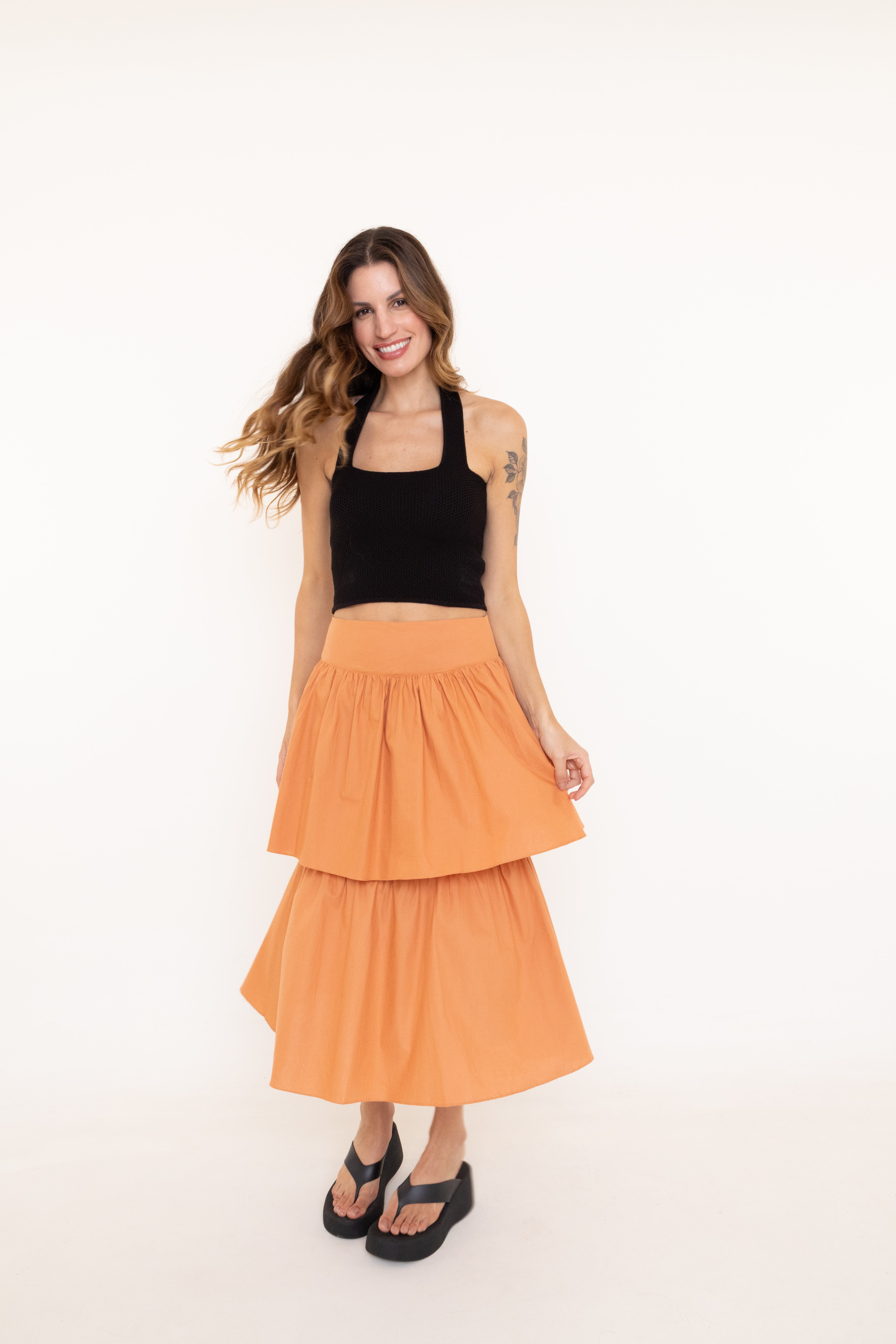 Confeccionada em 100% viscose, oferece leveza, caimento fluido e conforto. Seu design versátil permite criar looks casuais ou produções mais sofisticadas, tornando-a perfeita para o dia a dia ou ocasiões especiais, com estilo e elegância atemporais.