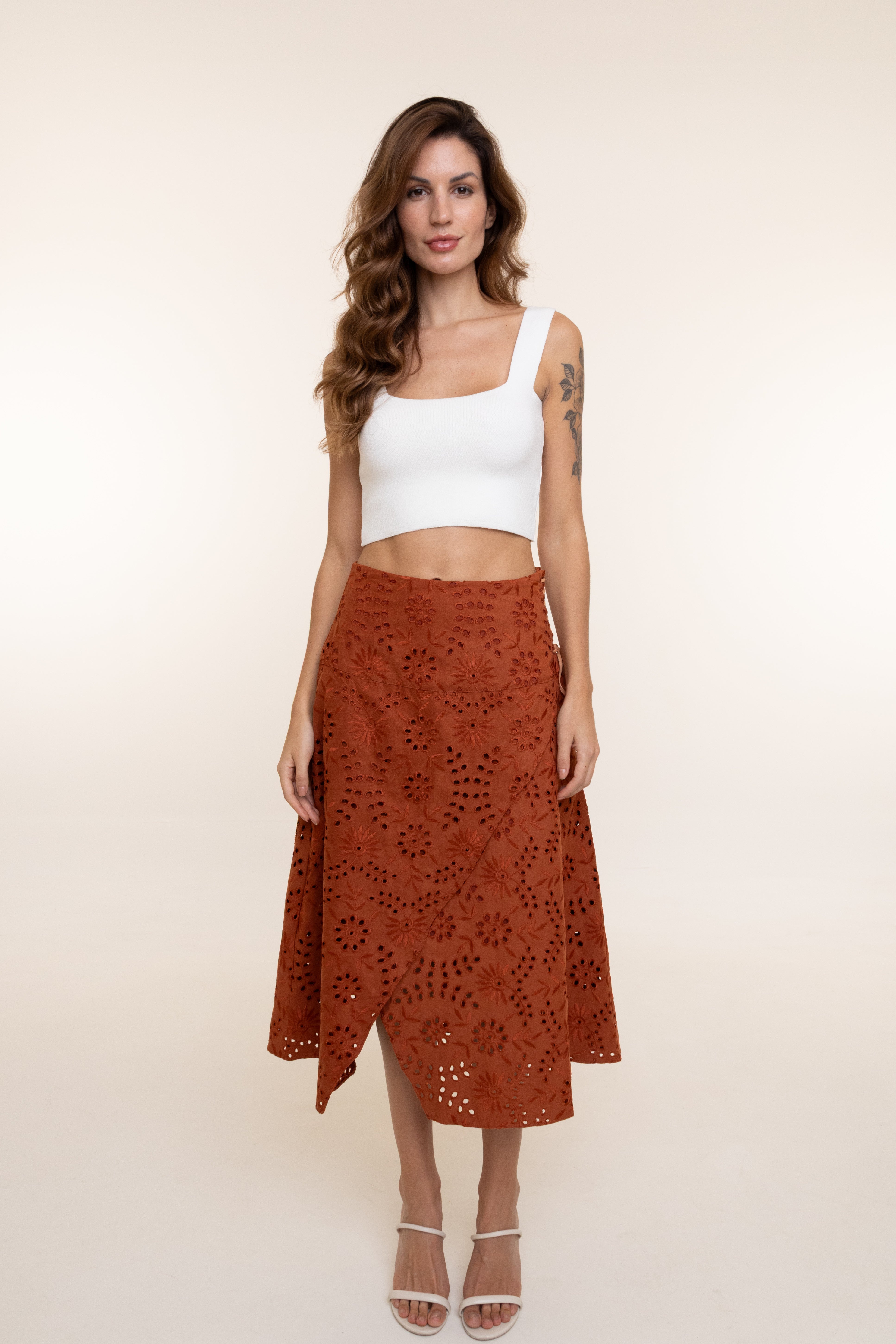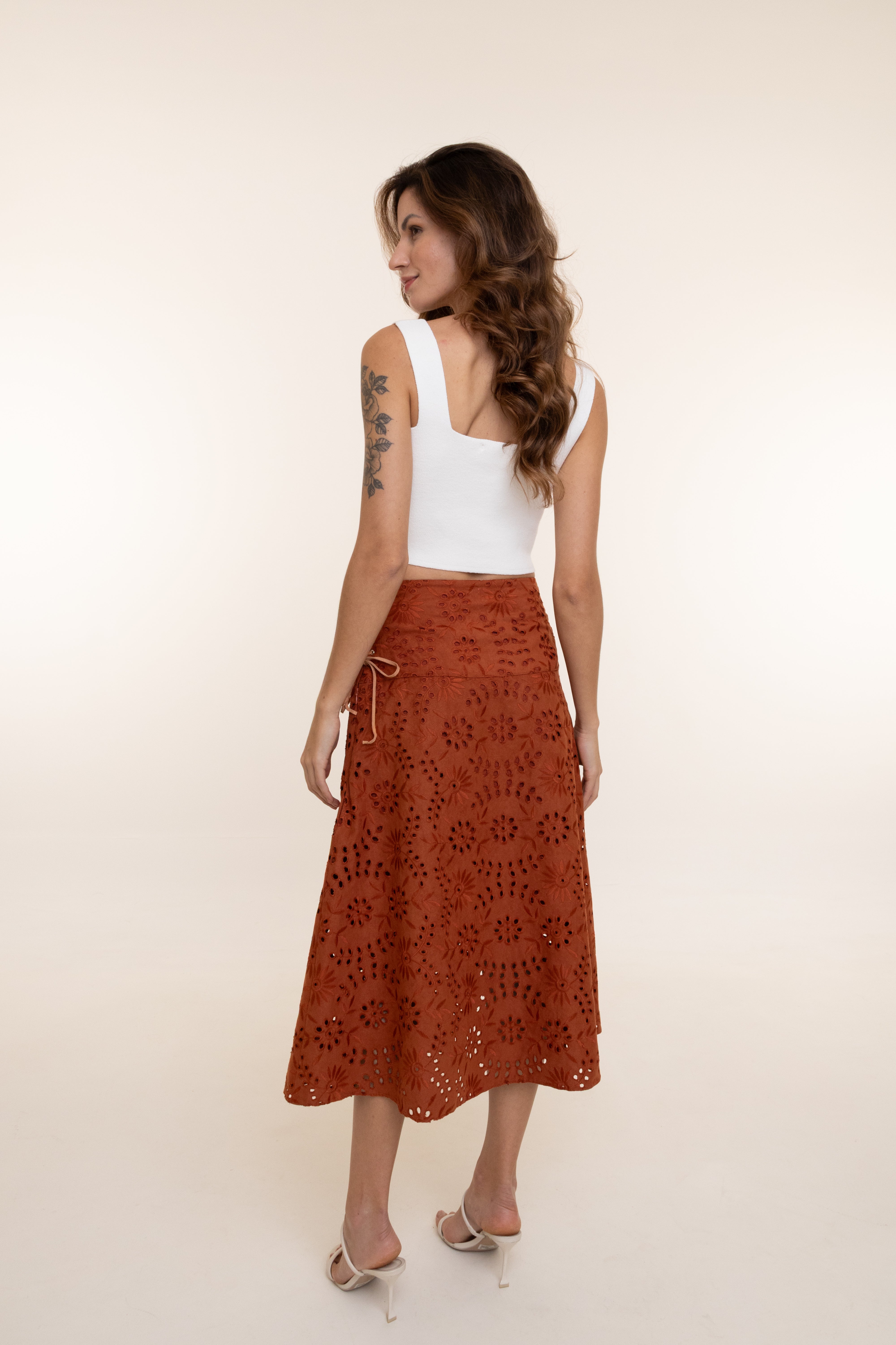Confeccionada em 100% poliéster, com forro 100% poliéster, combina leveza, conforto e sofisticação. O detalhe em laise adiciona delicadeza e elegância ao look, tornando-a perfeita para produções românticas ou ocasiões especiais, com caimento fluido e toque moderno.