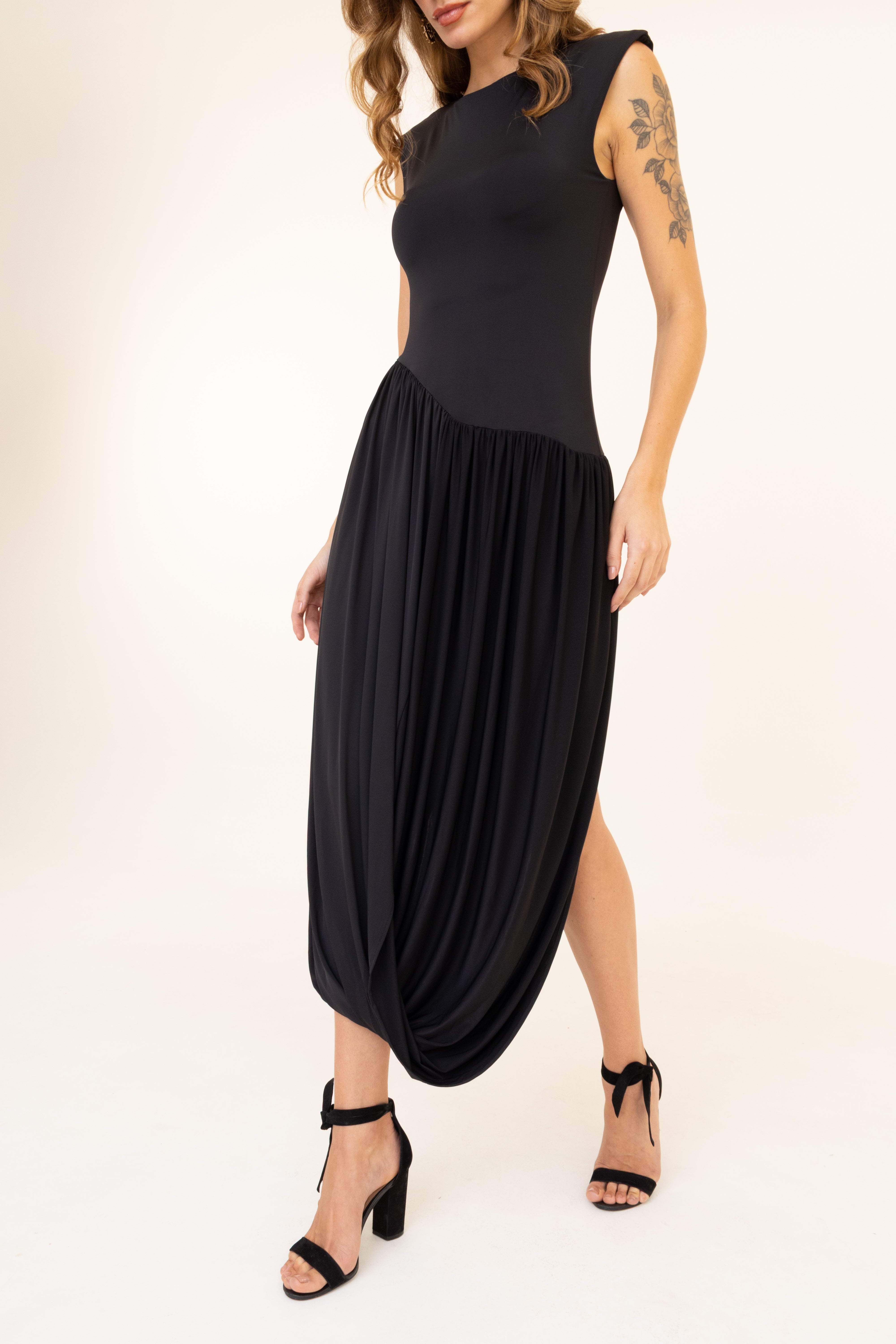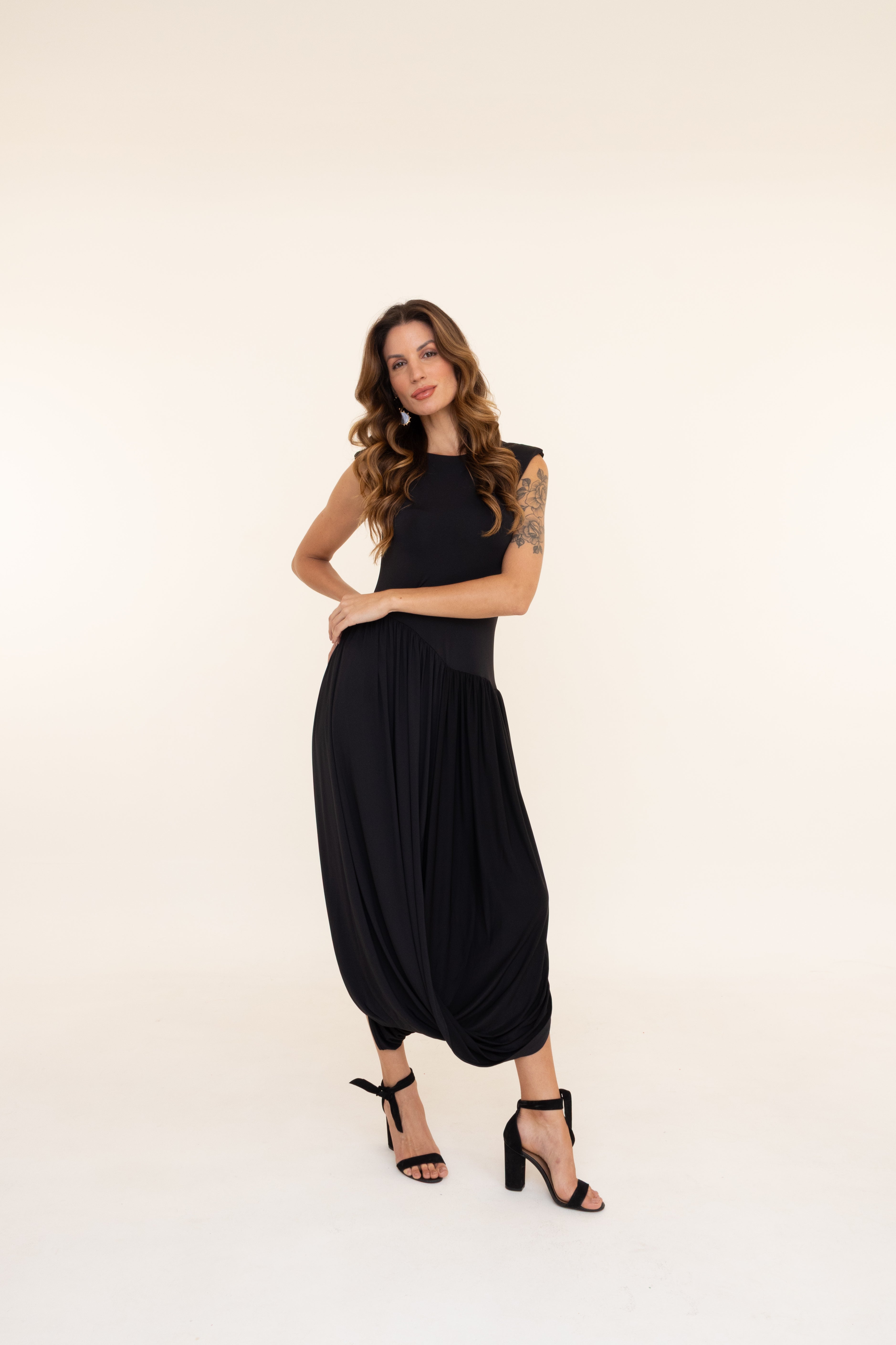 Confeccionado em 87% poliamida e 13% spandex, oferece elasticidade, conforto e um caimento impecável para ocasiões especiais.
