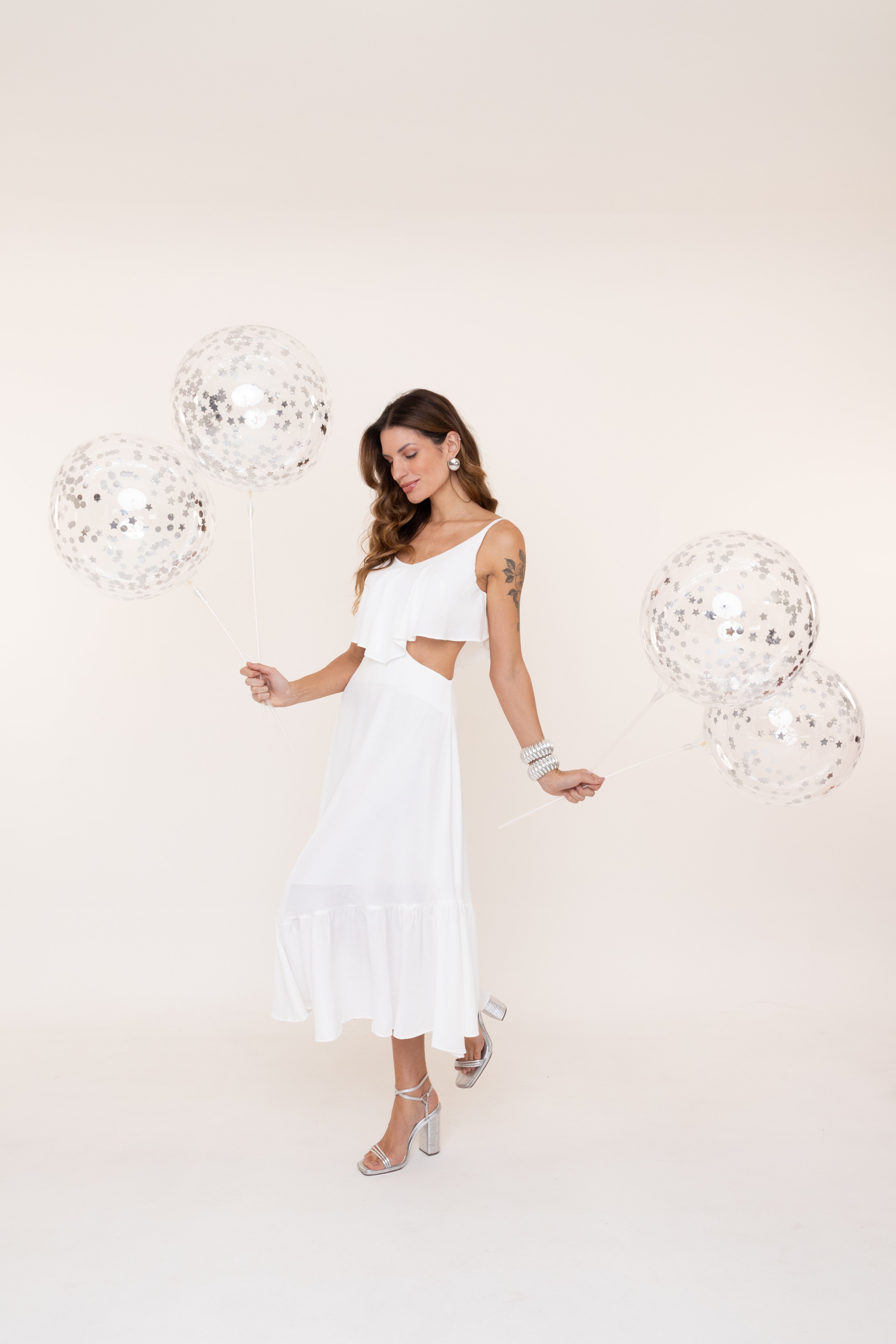 Confeccionado em 81% viscose, 16% algodão e 3% elastano, oferece caimento leve, toque macio e elasticidade na medida certa, trazendo conforto e sofisticação em qualquer ocasião especial.