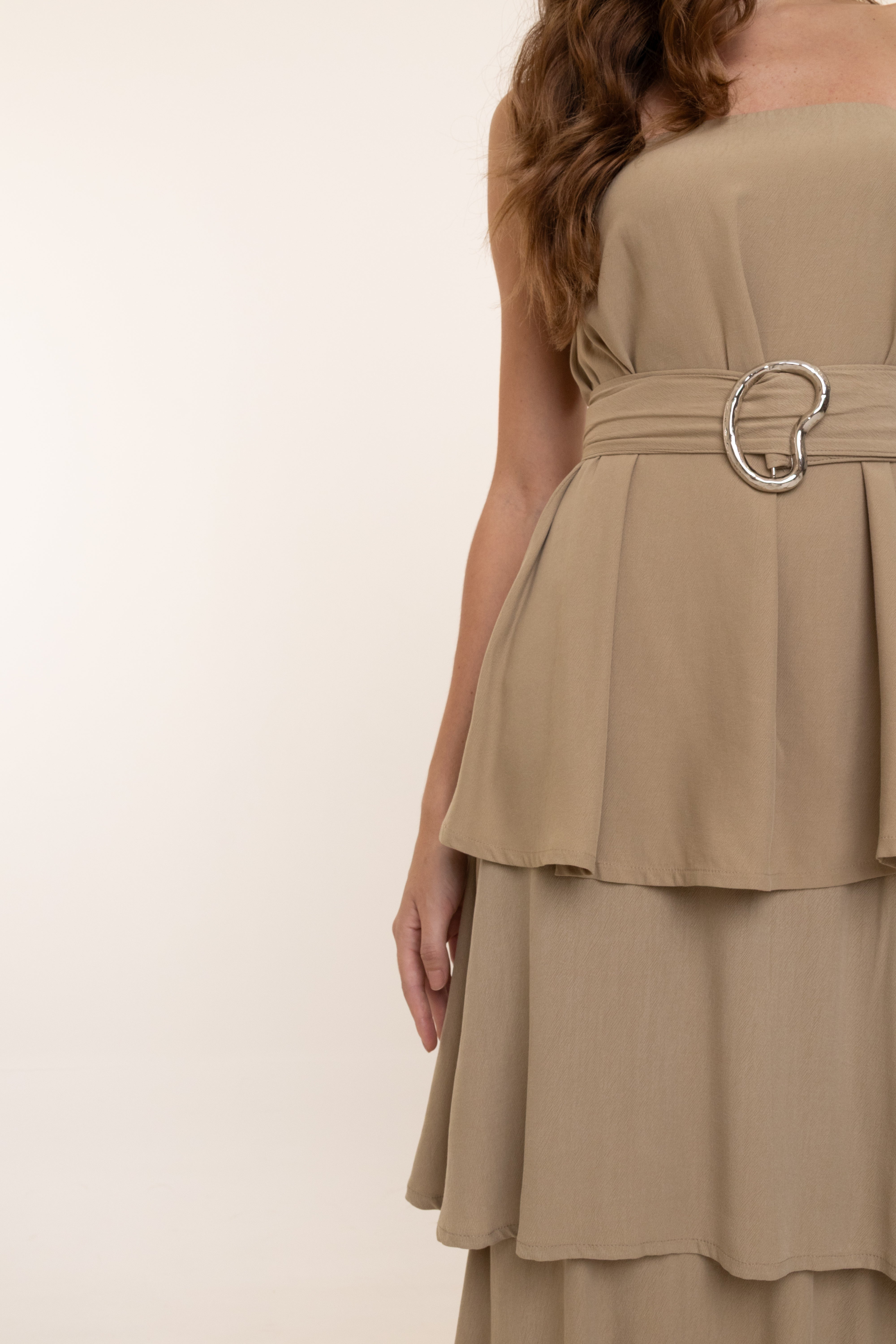 Confeccionado em 59% liocel e 41% viscose, com forro 100% poliéster, conforto e caimento impecável. Seu design 3 Marias adiciona volume e movimento, conferindo feminilidade e sofisticação ao look, perfeito para ocasiões especiais ou produções elegantes e modernas.
